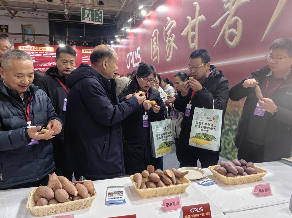 12月20日至22日,2025第七届中国甘薯产业博览会暨“十四五”国家甘薯产业技术体系成果展在郑州中原国际博览中心召开。在本次博览会上,共有150余家薯类产业链企业携千余款展品参展,从甘薯脱毒种薯种苗、水肥一体化、全程机械化到优质鲜薯和精深加工产品等,全方位展示了甘薯产业链的最新技术和成果。作为薯类品种选育单位,我院携多款甘薯新品种精彩亮相,在第一届“农缘诚杯”甘薯新品种品鉴大赛环节,经过由专家、鲜薯经销商、育苗企业负责人等组成的品鉴小组进行现场品尝,根据食味品质盲评投票评选,我院育成的烤薯型甘薯新品种“绵渝薯30”获评“十大潜力品种”,标志着我院在优质烤薯型品种选育上取得新突破。