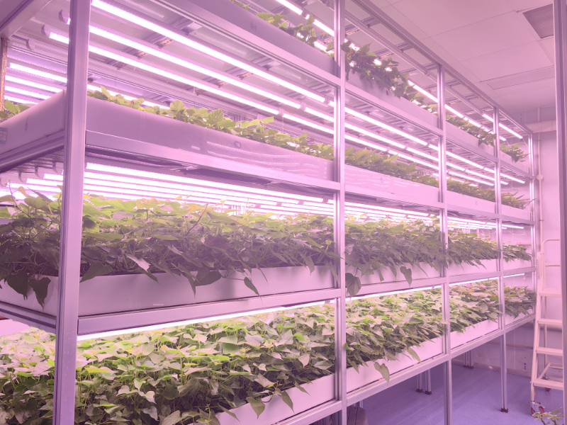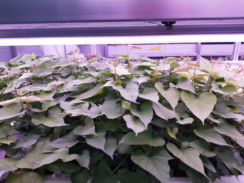 针对上述瓶颈,团队历时三年攻关,成功研发出适用于甘薯脱毒苗的周年高效水培繁育技术及配套设备。该技术充分利用甘薯在适宜温光条件下持续生长的生物学特性,通过人工光源和环境调控,结合营养液水培系统,促进植株分枝生长和腋芽成苗,实现周年连续扩繁。操作简便、扩繁效率高、生产成本大幅降低,同时密闭环境有助于保障种苗质量和生物安全。